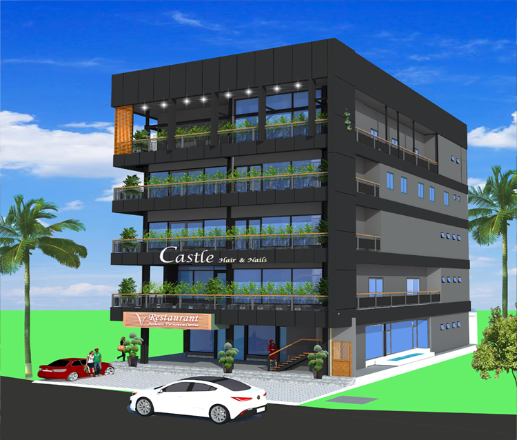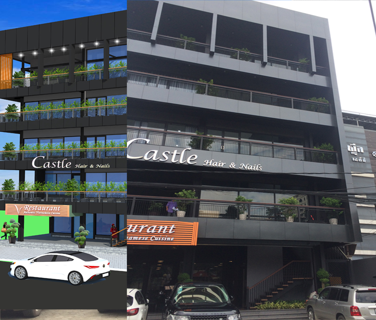 Nhà Hàng kết cấu khung thép tiền chế, sàn sử dung sàn Deck + bê tông , vách Cemboard